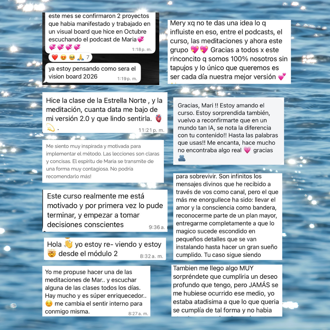 Clases grabadas, visualizaciones, ebooks de journaling, comunidad de whatsapp, grupo para hacerme preguntas... Y clases en vivo que se van sumando a la biblioteca. Todo lo que necesitás para un lavado de cerebro expansivo.