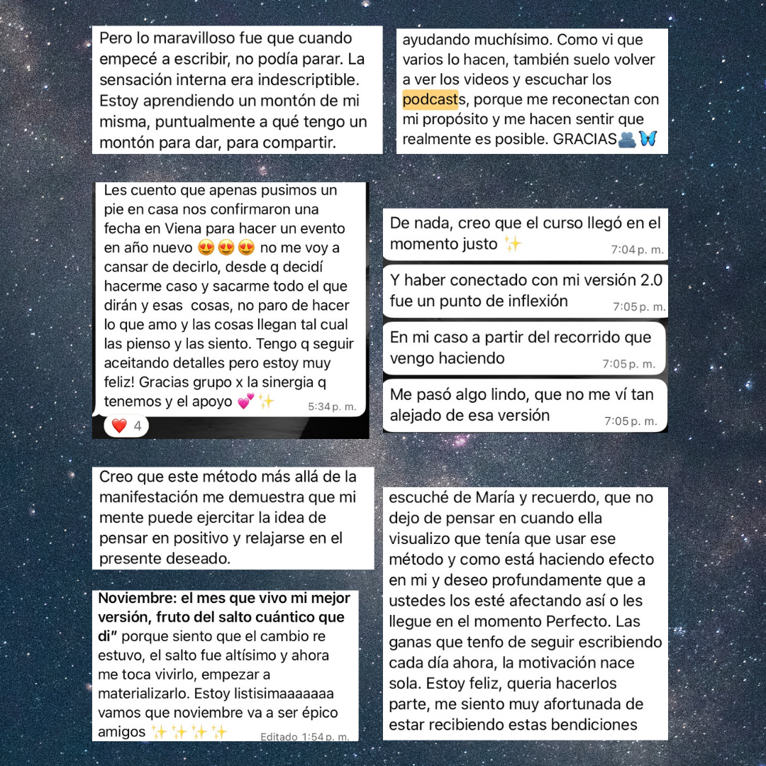 - Practicar métodos de visualización & journaling para acceder a nuevas lineas de tiempo y moldear la realidad.